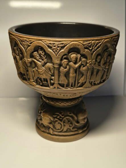 Puchar - Replika Średniowiecznej Chrzcielnicy z AAKIRKEBY. Ten wyjątkowy przedmiot jest wiernym odwzorowaniem XII-wiecznej ...